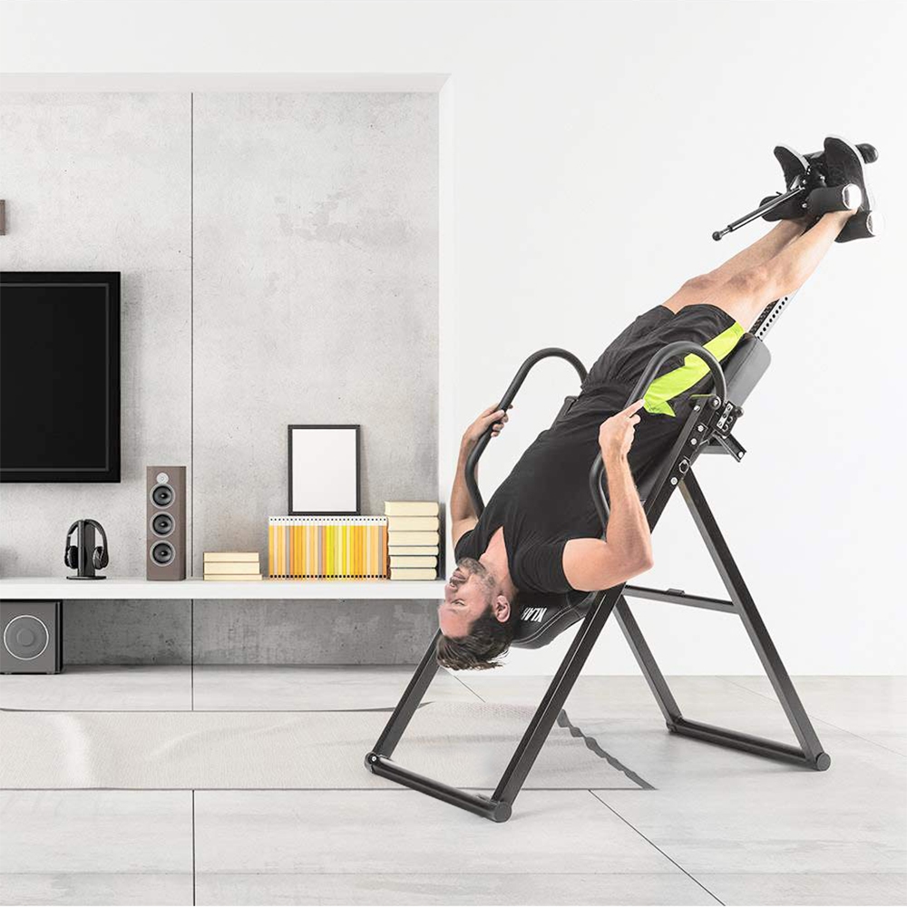 La table d’inversion est un appareil conçu pour incliner le corps à différents angles, parfois jusqu’à une position presque inversée. Le principe est simple : utiliser la gravité “à l’envers” pour réduire la pression sur la colonne vertébrale.